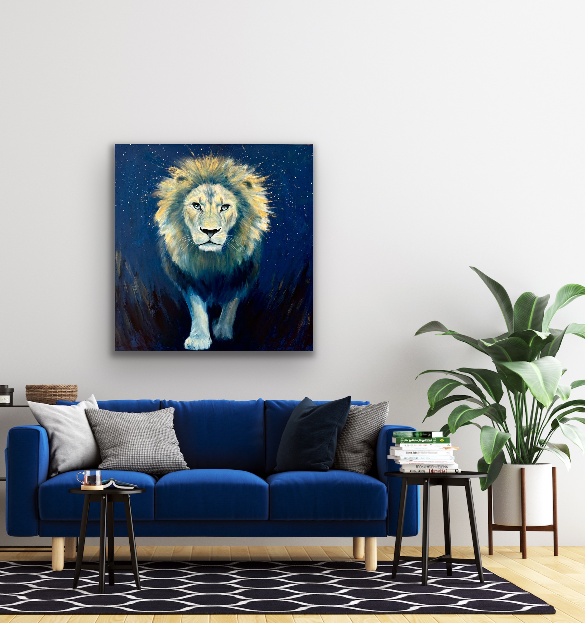 Lioness – blue, acrylic on a deep edge canvas, 40 x 40cm, £210