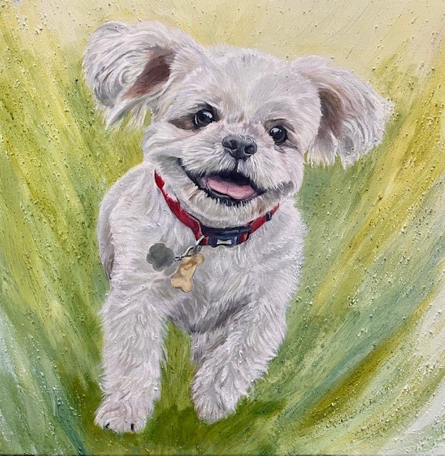 Once we’ve finalised these details, I will suggest ideas for your portrait’s composition before starting the painting. When the piece is complete, I’ll send you a photo for approval, ensuring it captures your pet’s character perfectly. Once you’re happy with it, I will apply two protective coats of matt varnish to preserve the artwork for years to come.
